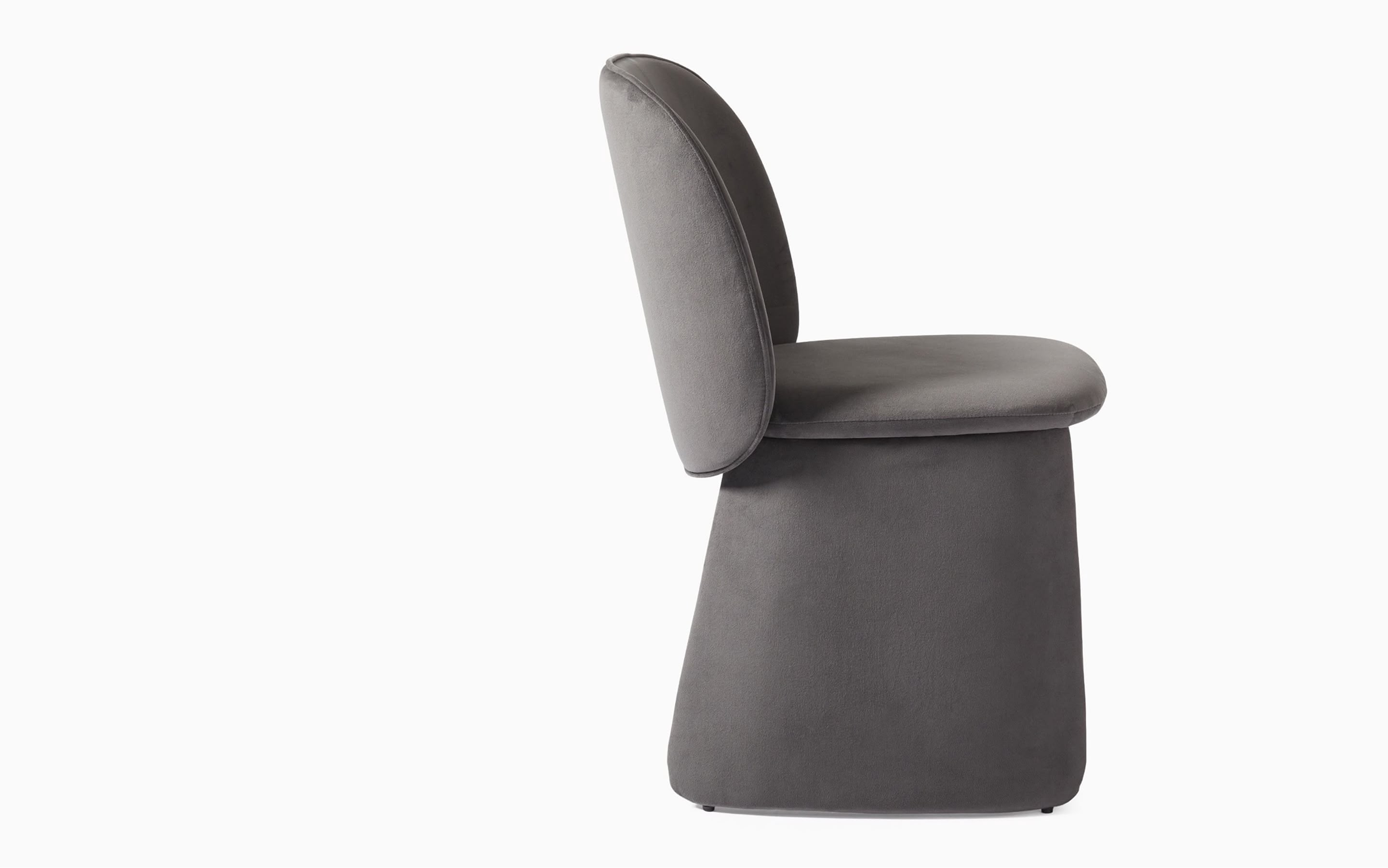 One of the first fully-upholstered dining chairs for the brand the Evie chair is simultaneously bold in it's visual presence, but subtle in the individual design details. A flatpack design, all elements are linked by the central seat for a strong connection but can be taken apart for easier shipping.